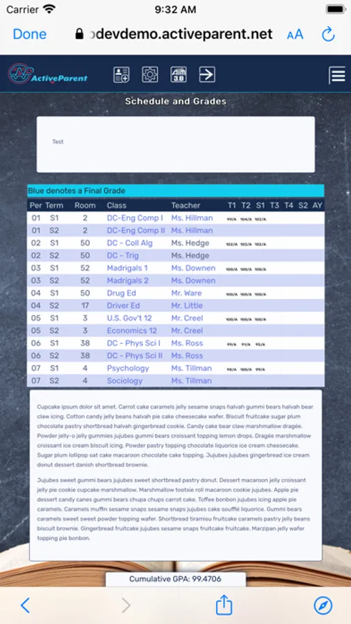 Parents can log into the iOS App with their existing ActiveParent account to view information about their student(s) including the following: