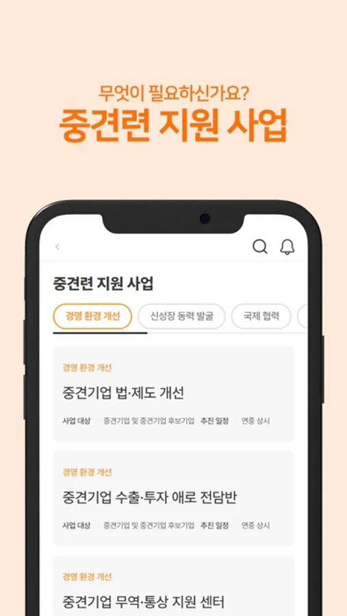 # 중견기업 정책, 지원 사업 및 행사 정보 서비스!