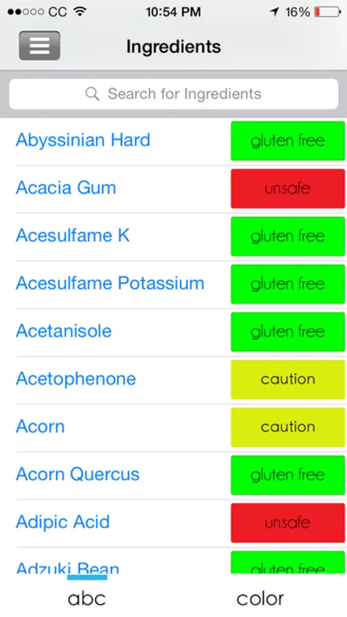 With a beautiful user interface, Gluten-Free is featured packed. The built in, auto-updating, Ingredients tab has the Gluten-Free status of 700+ ingredients. This version also supports custom flags for ingredients based on a particular user's sensitivities! This information is stored on your device locally and can be accessed wherever you are.