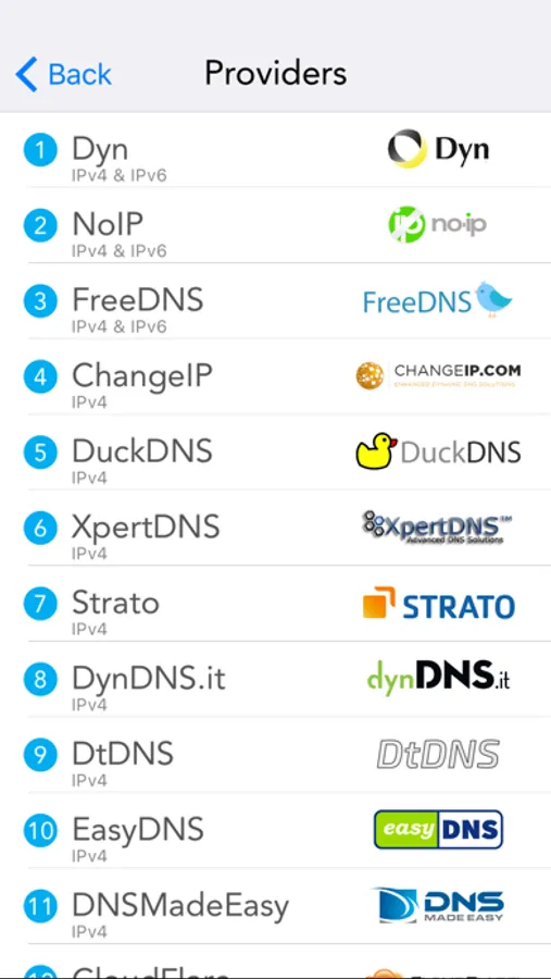 RealDNS Mobile updates 18 dynamic DNS providers: Dyn, NoIP, FreeDNS, ChangeIP, DuckDNS, XpertDNS, Strato, DynDNS.it, DtDNS, EasyDNS, DNS Made Easy, CloudFlare, Google Domains, Namecheap, Hurricane Electric, Loopia, OpenDNS, GoDaddy.