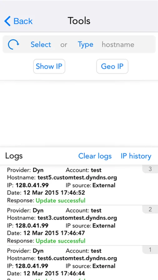 Logs - all your actions and the dynamic DNS provider responses will be displayed in the log view.