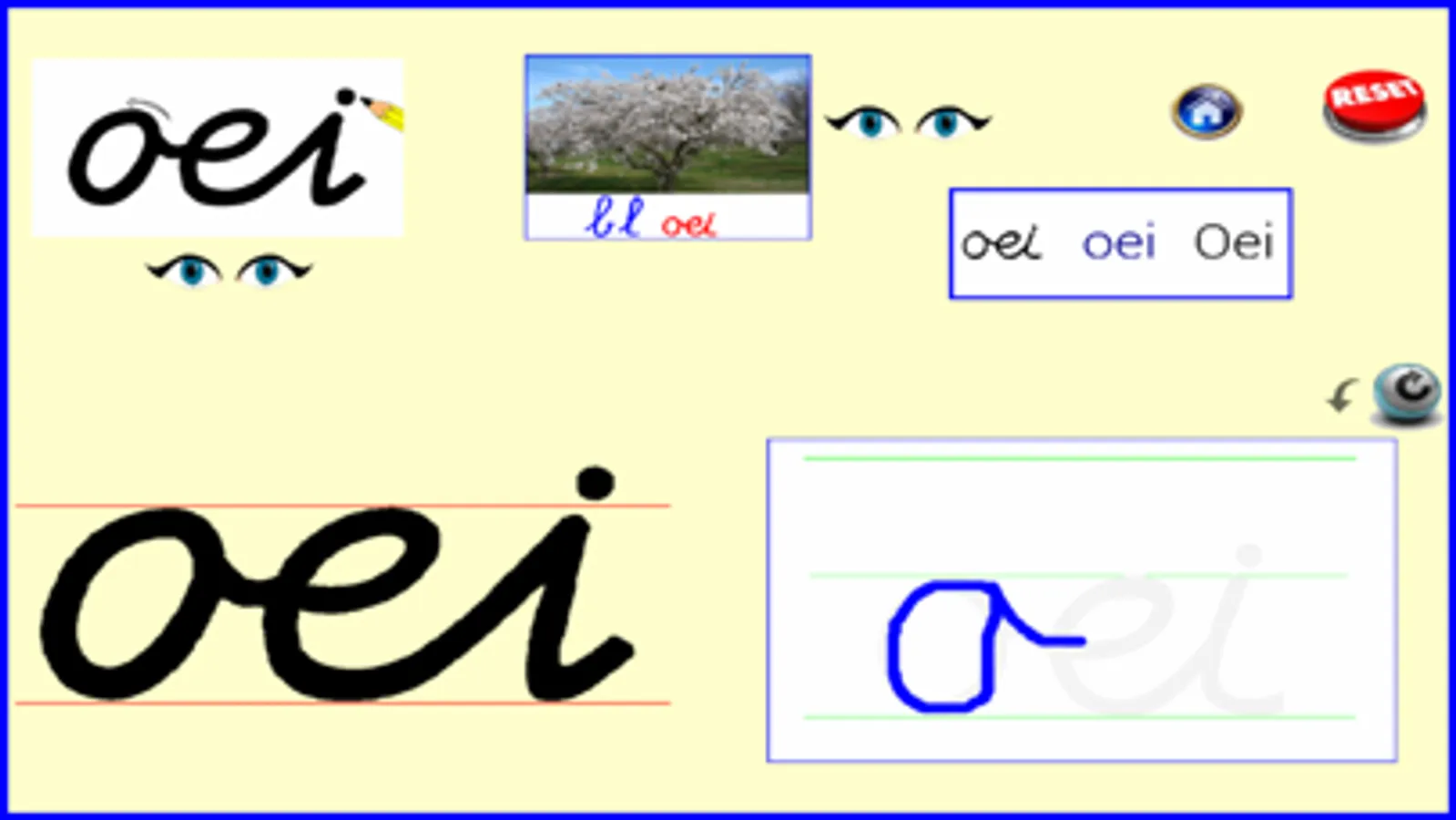 Met deze app. kan je de schrijfletters oefenen. De gebruikte letters komen ongeveer overeen met de letters van ‘pennenstreken’ en ‘ik pen’ van Veilig Leren Lezen van de uitgeverij ‘ZWIJSEN’. Hier oefenen we de tweeklanken en de beginletters van mmkm-woorden. Sommige letters kunnen verschillen van aangeleerde letters van een andere schrijfmethode. Het schrijven op een tablet is vrij moeilijk programmeerbaar. De goede werking hangt af van verschillende factoren. Schrijven op een tablet met de vinger kan. Beter is het gebruik van een tabletpen (grootte van een potlood). Tussen tabletpennen bestaan grote verschillen (+/- 10 euro). Ook de gevoeligheid van het tabletscherm en de snelheid van de processor (CPU) spelen een grote rol. Ik heb deze oefeningen gemaakt steunend op mijn 25 jaar ervaring als leerkracht 1ste leerjaar. De meeste oefeningen worden zowel visueel als auditief ondersteund. Billiau Danny.