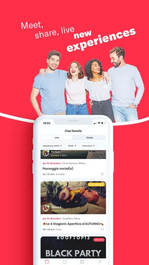 • LIVE Events: events at home and in the open air, which take place in the cities of Milan, Rome, Turin and Barcelona.
