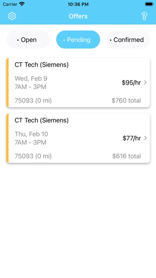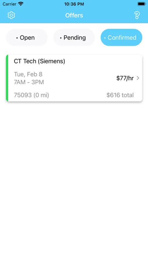The PRNPool mobile application allows professionals to review shifts, control contact options, and accept, decline, or counter on available shifts. If accepted for a shift, also allows the professional to check in, so PRNPool is notified that they are at the assignment.