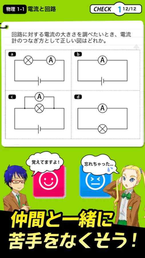 それぞれの単元の基礎知識を「覚えてる!」「忘れた」で確認できます。