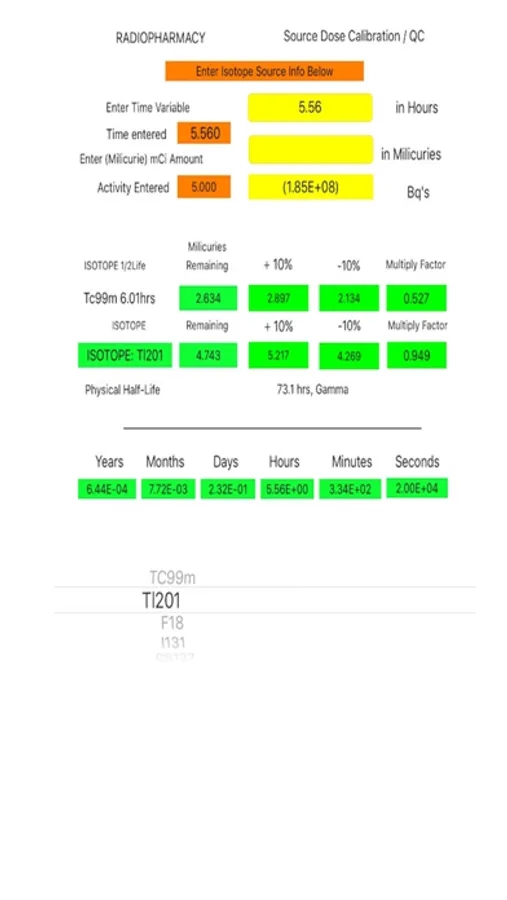 Source Calc is a Radio-Pharmacy Source Dose Calibration / QC with Dual Isotope Quantification Measurements.