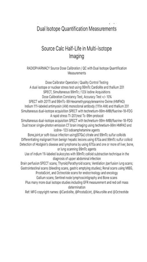 For Use as: RADIOPHARMACY Source Dose Calibration / QC with Dual Isotope Quantification Measurements