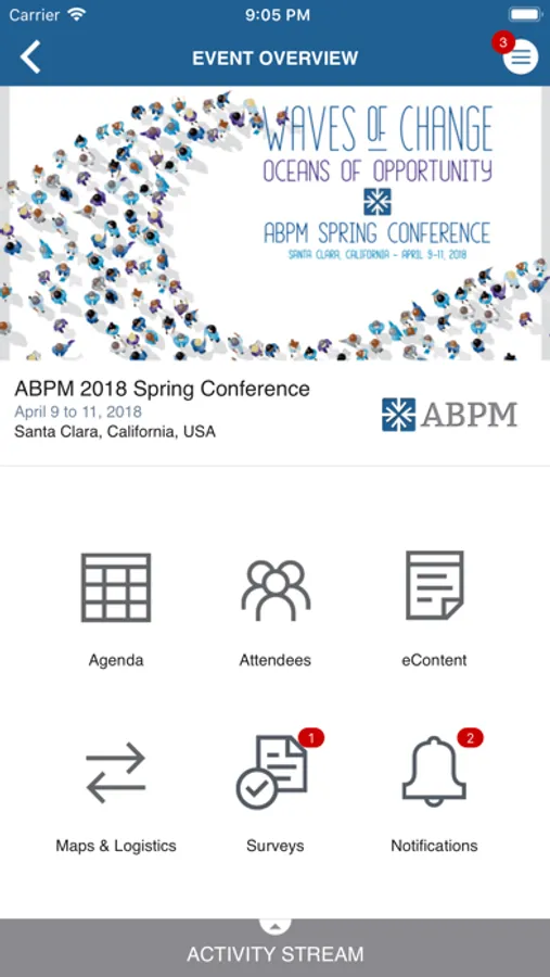 The MyABPM Conference Mobile App is the central place for all ABPM conferences and communities. Registered attendees to get event info, maps, agenda items, session locations, presenter bios, travel and logistics options. The app informs attendees of room changes, eContent updates and more. Integrated surveys allow users to easily give feedback directly within the app. The Activity Stream keeps attendees in touch with social media buzz around the event. Community members can view relevant news items, connect with each other through messaging, and stay abreast of upcoming events and promotions.