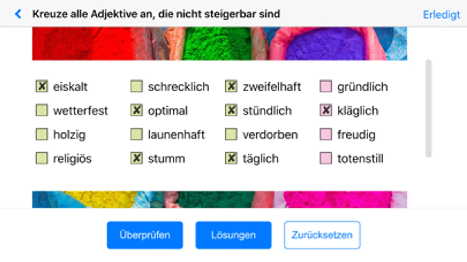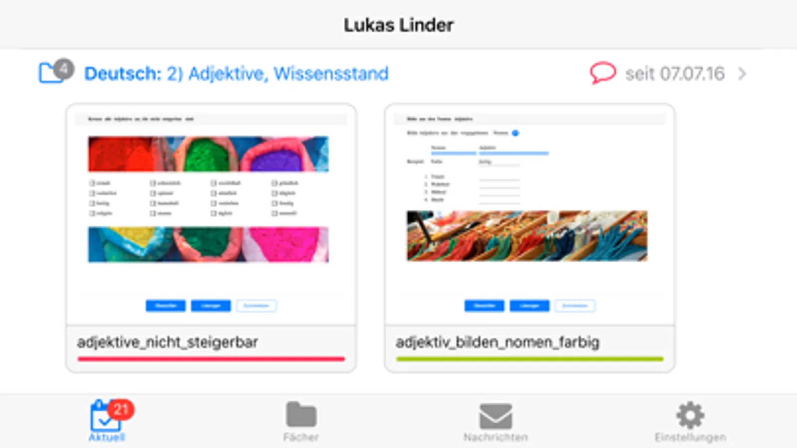 Die Schülerinnen und Schüler lösen die Übungen direkt auf ihrem Tablet in der App. Die Resultate und Auswertungen werden der Lehrperson übersichtlich angezeigt.
