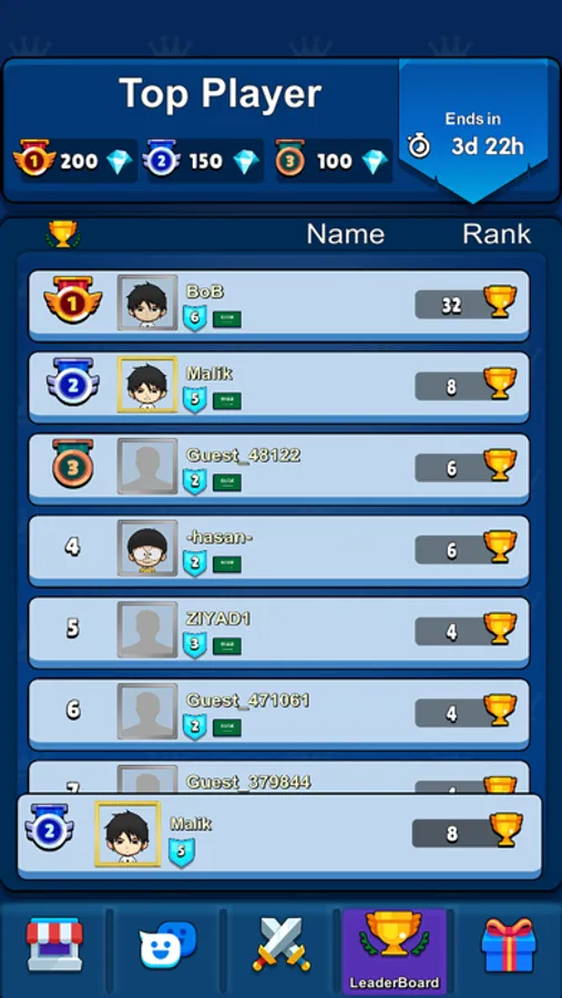 نظام المستويات في اللعبة كلما زاد المستوى زاد الصعوبة واصبح التحدي مع اشخاص ذو خبرة وذكاء عالي