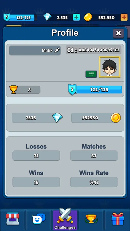 أظهر مهاراتك وتحدى لاعبين عالميين في مباريات فردية لتربح العديد من الذهب والمجوهرات .