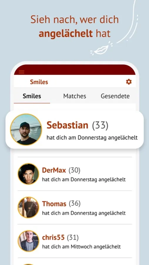 • Erfahre, wer dich mag und dir ein Smile geschickt hat