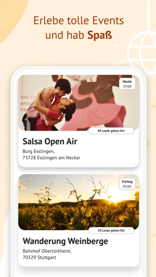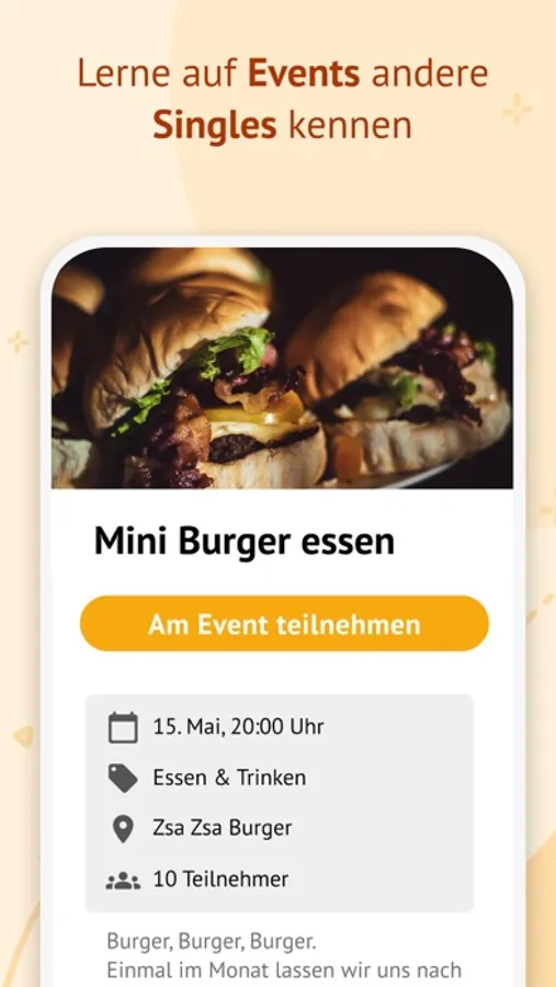 • Treffe andere Singles auf spannenden Events und teilt gemeinsam tolle Erlebnisse
