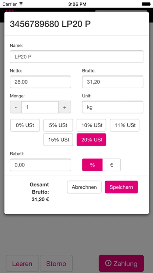 - Produkte mit Name, Beschreibung, Rabatt und Steuersatz