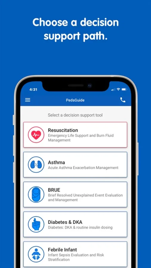 PedsGuide is a multi-module pediatric clinical decision support tool intended for use only by professional health care providers and emergency personnel for informational and educational purposes. *Each module provides users with a step-by-step interactive clinical decision support process, including reference material and/or contextually relevant information based on evidence-based practice and expert opinion routinely used in clinical practice, to assist in management of various acute illnesses in children.