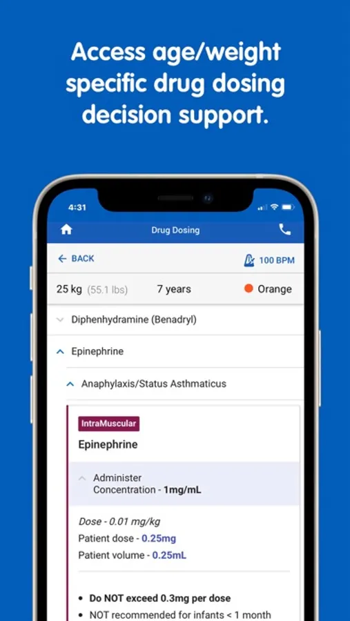 -Weight and age-based tools for pediatric resuscitation, emergent medication dosing, cardiovascular drip calculation, rapid sequence intubation, acute burn assessment and fluid resuscitation guidelines, Glascow scoring, and much more!