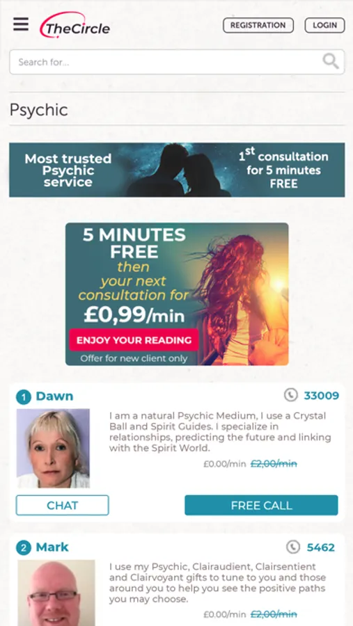 Contact highly skilled and gifted psychics live for love and life advice at the touch of a button. Speak to the same exceptionally talented psychic Readers for personal psychic advice on TheCircle psychic app.