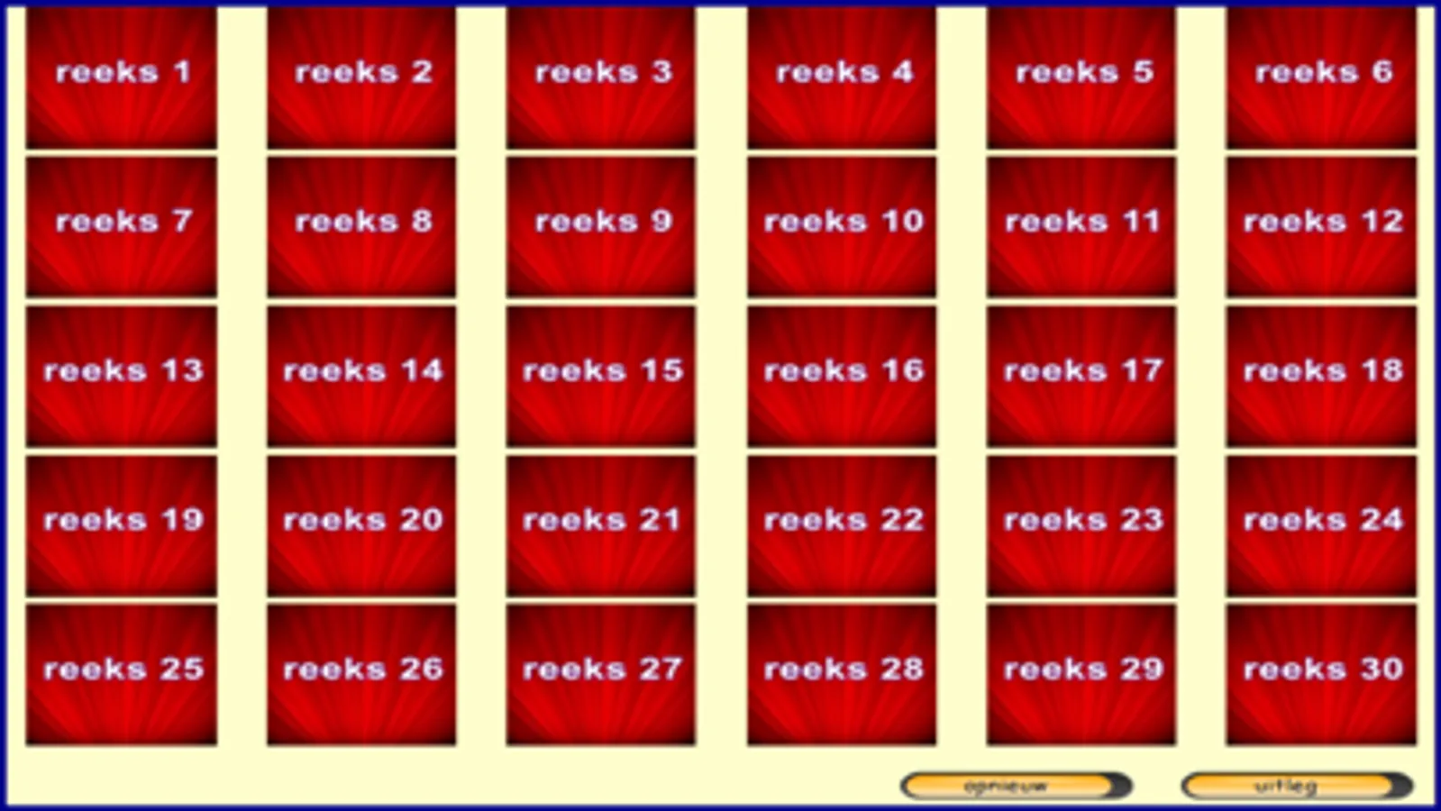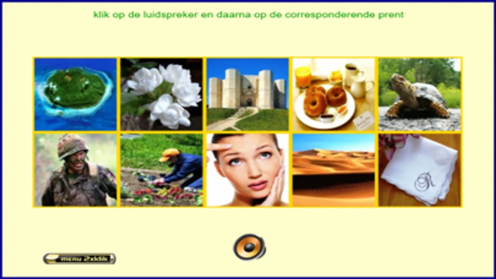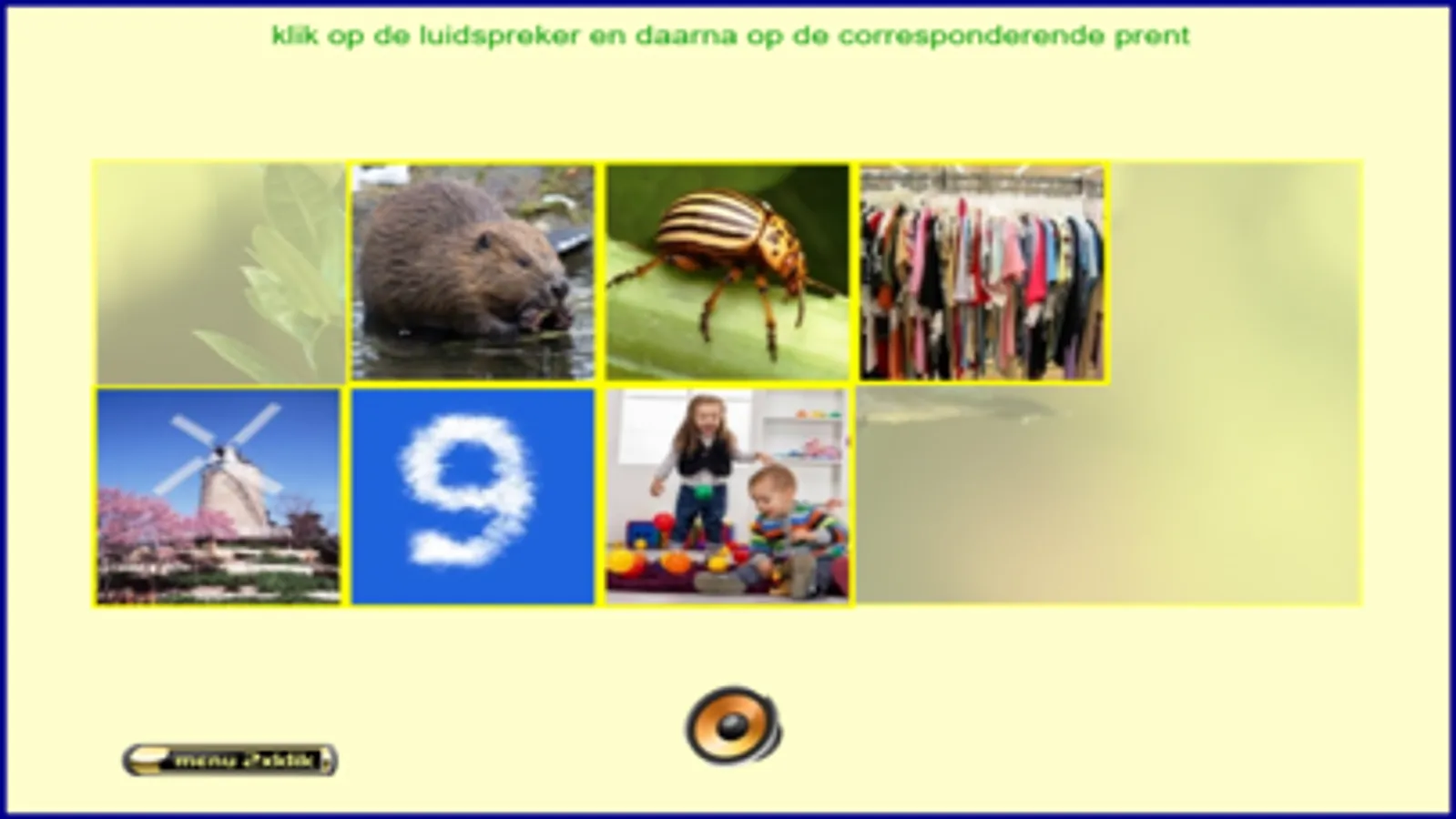 Deze app bevat 30 reeksen van 10 woorden, dus 300 woorden. Dit is geen leesoefening, wel een woordenschatoefening. De oefeningen zijn bedoeld voor kleuters en/of anderstaligen. Ik heb deze oefeningen gemaakt steunend op mijn 25-jarige ervaring in het 1ste leerjaar. Billiau Danny.
