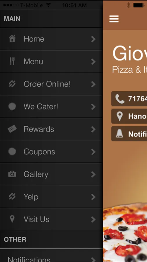 Download the App for Giovanni’s Pizza & Italian Restaurant and enjoy easy online ordering, a menu of Italian deliciousness, exclusive offers, specials and more, right at your fingertips. That little icon on your smart phone opens a window to exclusive savings, discounts, social medial links and the full story of this pizza place that features gourmet pizza and pasta, freshly made bread, clean surroundings and a staff that cares. Scroll through for casual catering, authentic flavors, BYOB options and more. Whether you dine in, take home a special meal or have your next gathering catered, you will App-reciate the care that goes into every meal served at Giovanni’s Pizza & Italian Restaurant.
