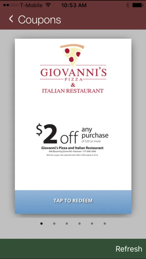 The App from Giovanni’s is FREE and you will receive your first offer after it is downloaded.