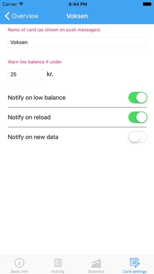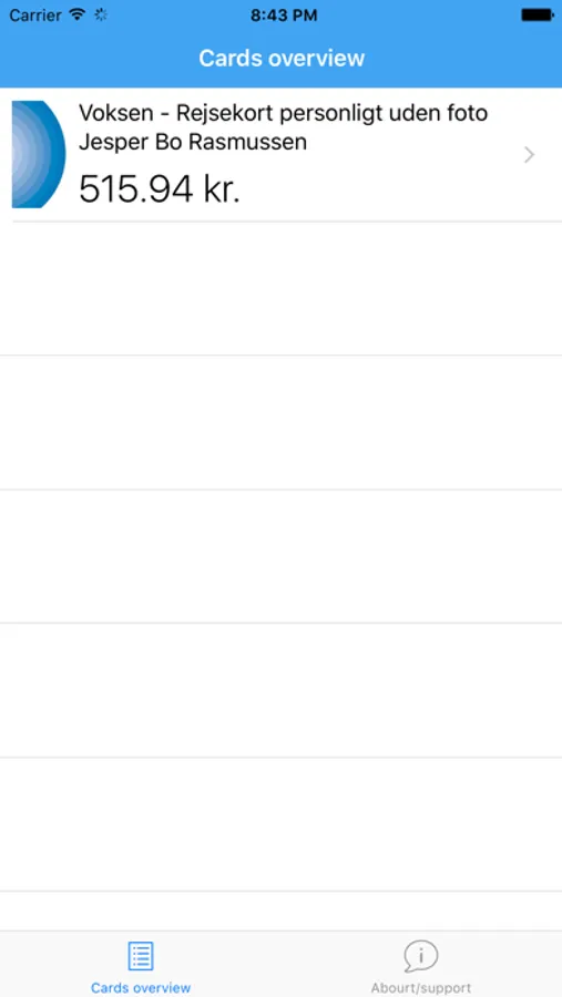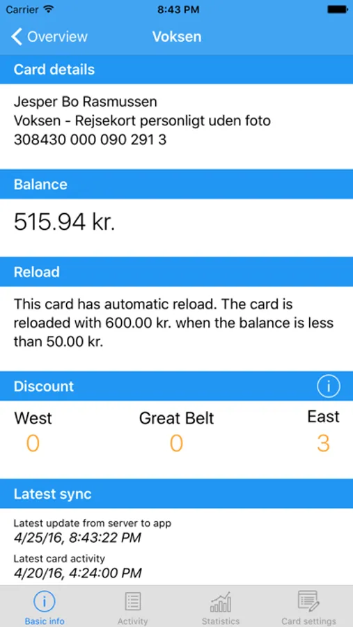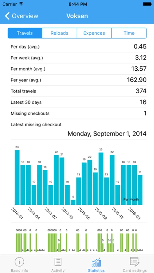 - Full statistics on You use of the card. Like amount per year, amount per month, forgotten check-outs and time consumption.