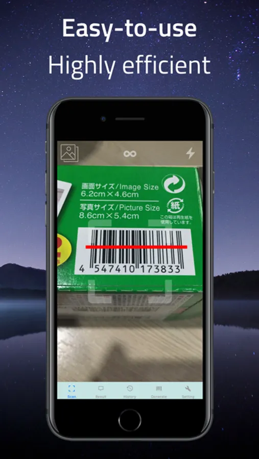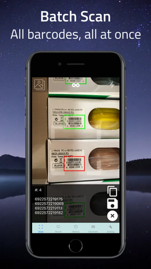 - By hovering the camera in front of the barcode, or uploading a barcode image from your album, the app will instantly display the decoded text/number.
