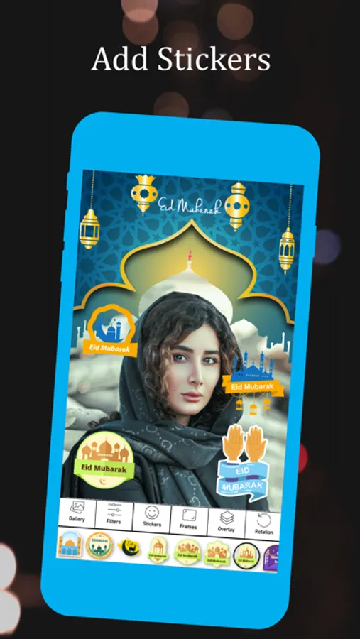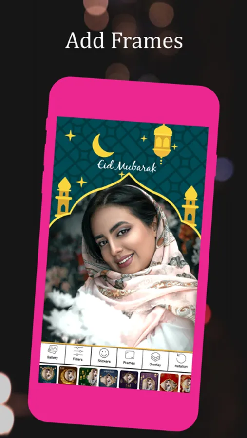 Adjust photo in selected Muslim/Islamic photo frame by zoom in / zoom out , move and rotate.
