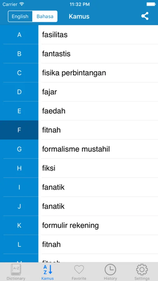 ▩ Bahasa Inggris to Bahasa Indonesia Dictionary – The second feature of the app is Bahasa Inggris to Bahasa Indonesia dictionary. With this feature you can find meaning of Bahasa Inggris words in Bahasa Indonesia. The database contains the most extensive words in Bahasa Inggris which you can have translated.