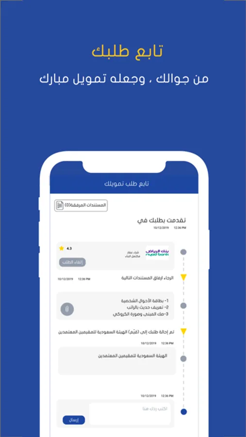 بعدها سيقوم فريق تمويل بتولي المهمة حتى اتمام طلبك ويمكنك ان تشارك تجربتك مع جهة التمويل وتفيد الالاف من الباحثين عن تمويل من خلال تطبيق طلب التمويل الأول في المملكة العربية السعودية #تمويل.