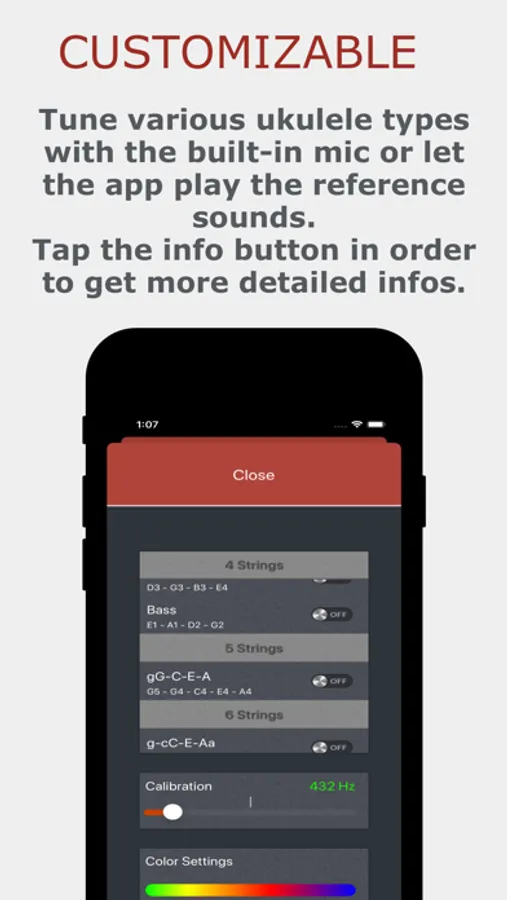 Simple Ukulele Tuner is easy to use and provides an aesthetic and customizable user interface.