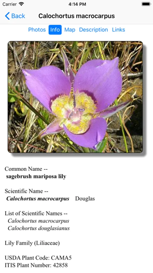 The App, which does not use the internet, helps find and identify plants. When you give the App information about a plant, such as its location, flower color and the time of year, the App will quickly show you which plants match your selections.