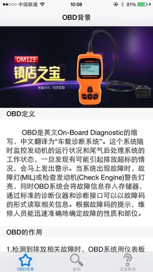 本产品用于OBD知识的相关介绍,OBD故障码查询以及相关工具的使用说明