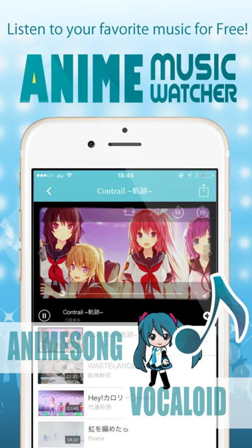 This app contains from the old to the newest anime and vocaloid songs and lets you watch and enjoy anywhere, anytime for free!