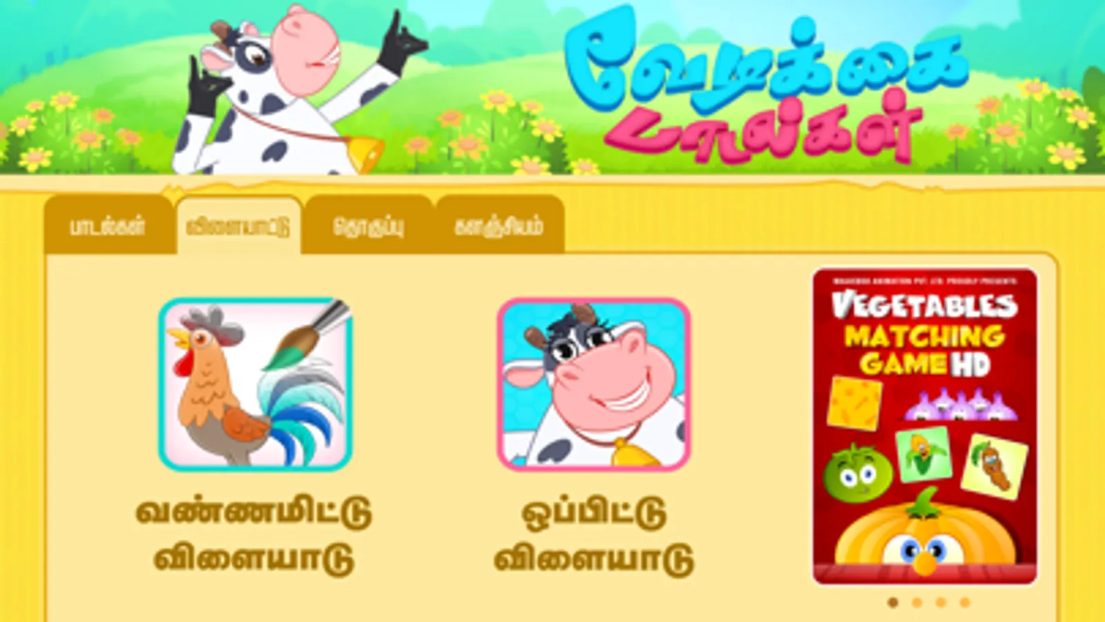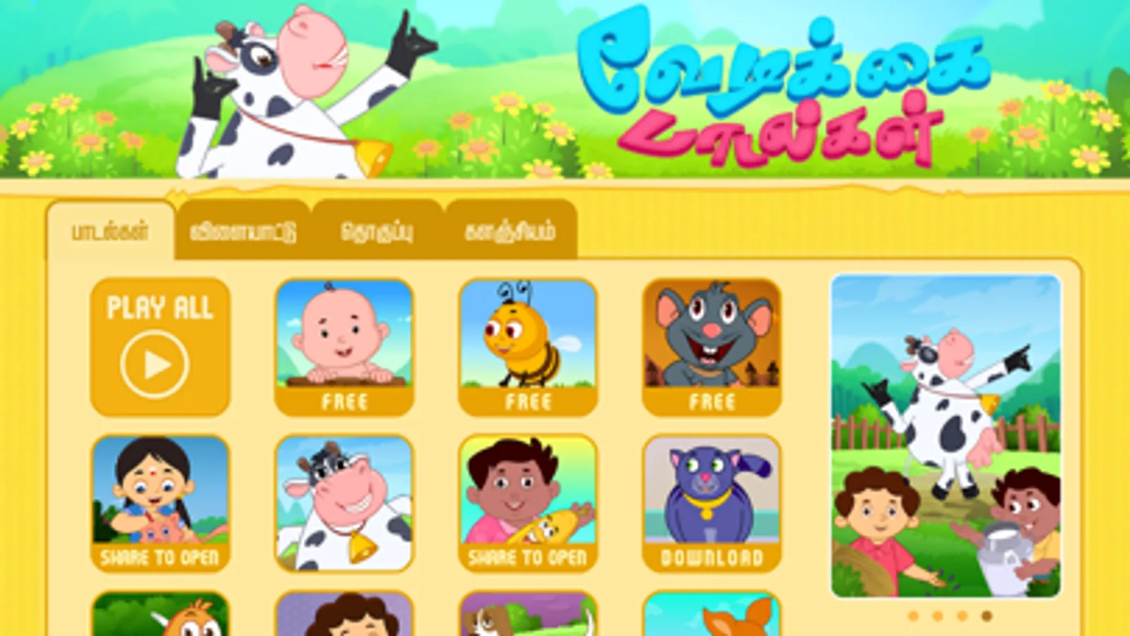 Tamizh Kids Comedy Rhymes (Tamizh Vedikkai Padalgal), A wonderful Nursery Rhymes app for your kids with songs, music, animations and sing-along. A fantastic app for kids featuring Twenty One popular Nursery Rhymes.