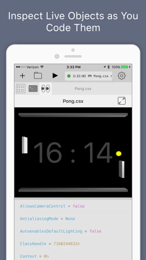 Continuous is always building and running your code so you can see changes as you type. Writing interactive apps in Continuous is a pleasure compared to the traditional code-build-run cycle. It frees you to make lots of small changes and see their effects immediately - no more waiting for builds or deployments and no more clicking around trying to get to the screen you're trying to code.