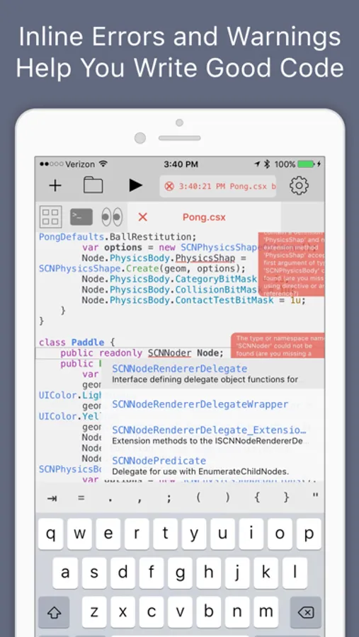 Continuous is a fast and powerful .NET C# and F# IDE that runs directly on the iPad and iPhone (no network needed!). With it, you can write apps and games using your favorite languages on your favorite devices.