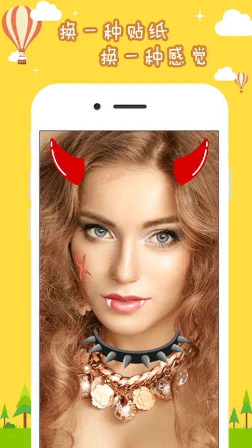 This app is a wonderful live photo sticker app. It help you to make you camera become a live sticker camera, and take photos with the funny build-in stickers, devil, rabbits, cat and so on, up to more than 30 different template. and all is for free.