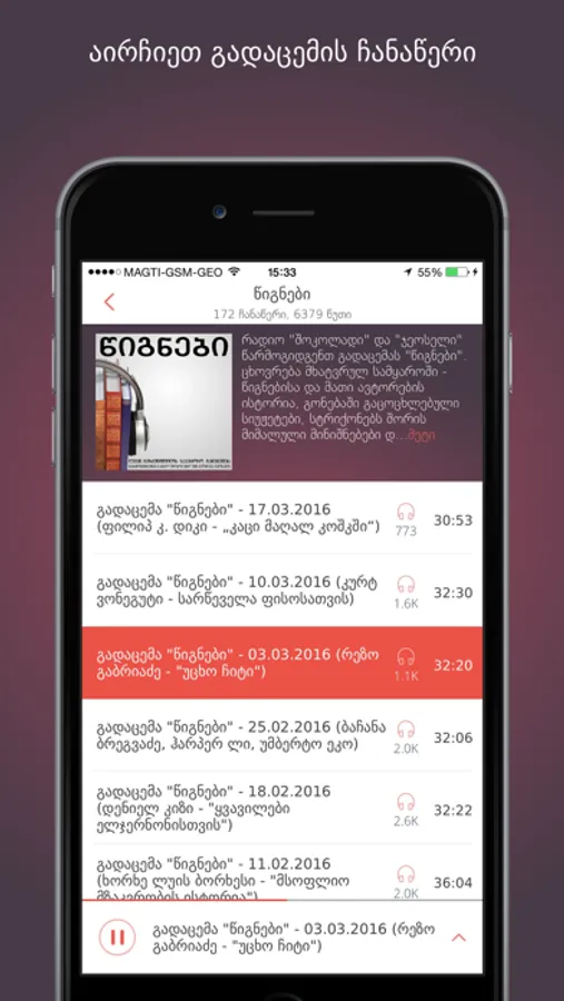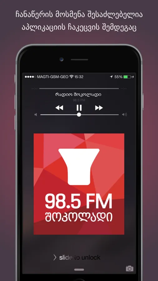 * You can listen the radio or a record after closing application and even when the iPhone screen is locked;