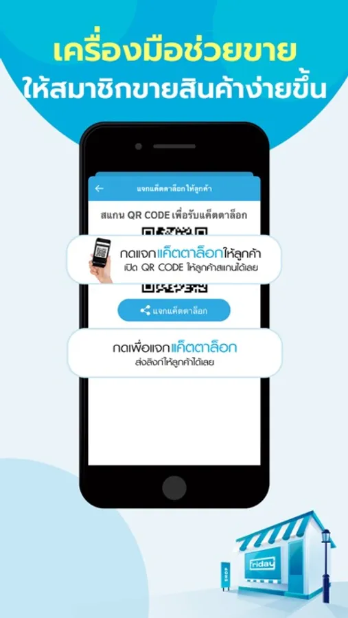 - เชิญชวนลูกค้าโดยการสแกน QR Code หรือส่ง Link ผ่าน SMS,E-mail,Facebook,Twitter และ LINE