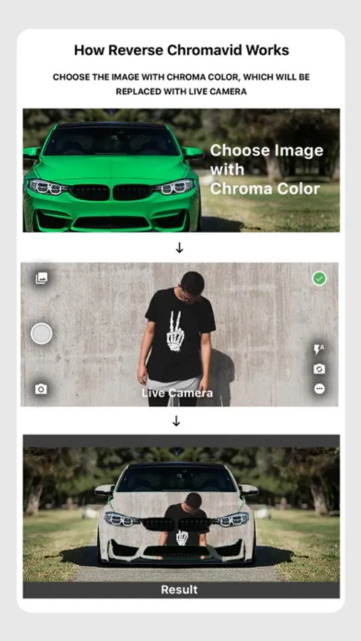 That’s it ! The Background Chroma color will be replaced with the photo or video you selected in the Camera. You can take a photo or record a video.