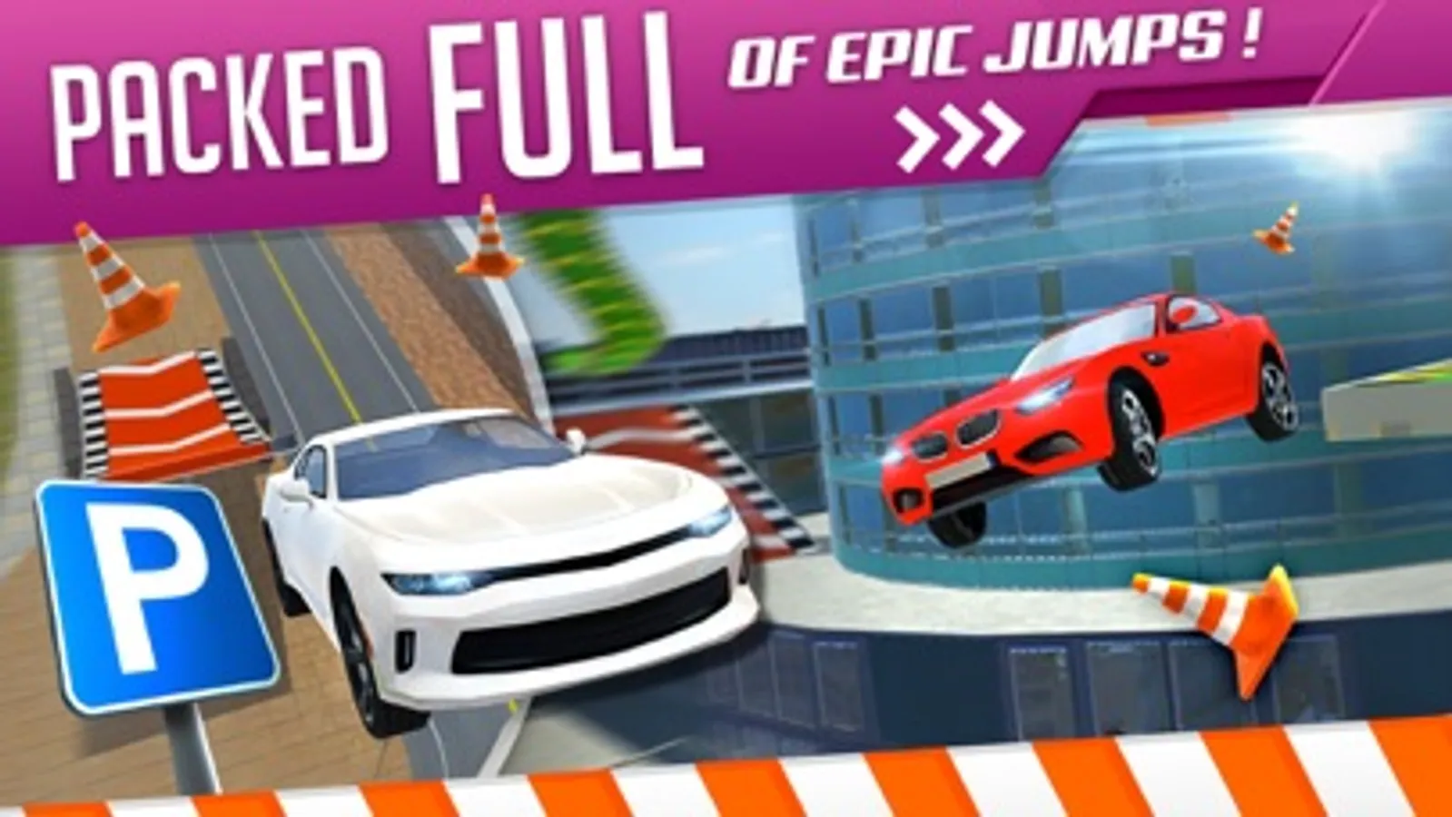 Roof Jumping Returns, in the biggest and best Roof Jumping Stunts game we’ve ever made!! Discover a huge city playground packed full of exciting jumps, stunts, secrets and 75 intensely challenging Missions. Collect and race 15 amazingly detailed Stunt-Tuned Cars to victory. Take your racing to the rooftops!