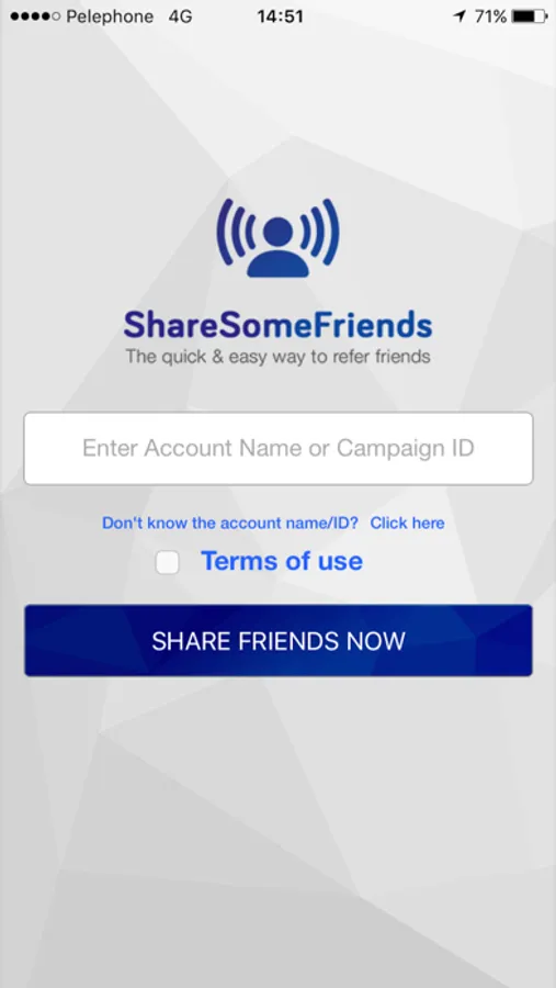 Here’s how it works: Each participating business or organization creates a unique account name and provides it to customers. After downloading the app, customers enter the account name, select some friends from their contact list, edit a personalized text message and then share it with those friends. Talk about simple!