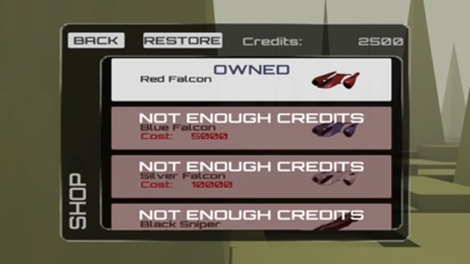 Race in Hover Racer at break-neck speeds through an ever-changing landscape in a space age hover craft. Collect credits as you race, then use them to purchase items in the integrated shop.