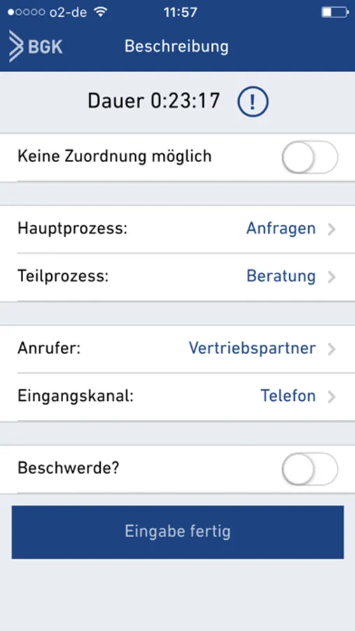 BGK-Basis-E hilft Unternehmen Prozesse transparent zu machen. Mit der App können Mitarbeiter Daten zu ihrer täglichen Arbeit erfassen: Tätigkeit, Dauer, Auslöser, Qualität usw.. Die intuitive und strukturierte Bedienung gewährleistet eine schnelle und qualitativ hochwertige Erfassung.
