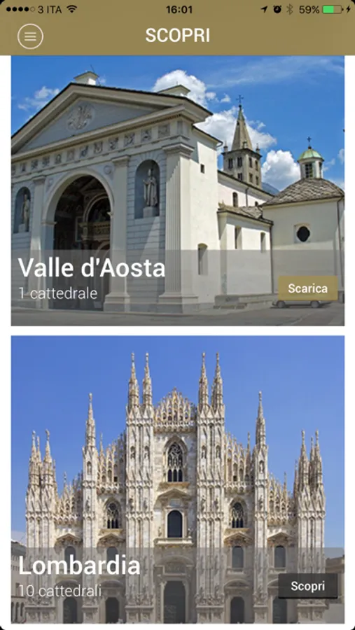 L’utente può navigare per regione amministrativa o ecclesiastica, fare ricerche o scoprire le Cattedrali vicine a lui.