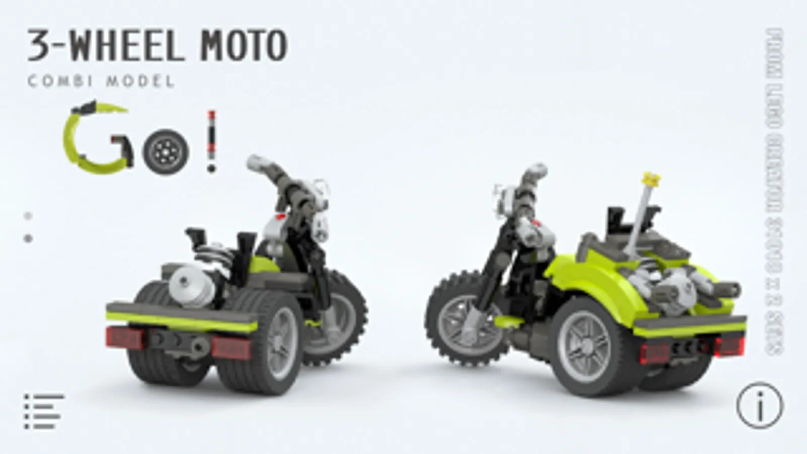 Build these 3-wheeled motorcycles from two LEGO 31018 Creator sets, using our building instructions.
