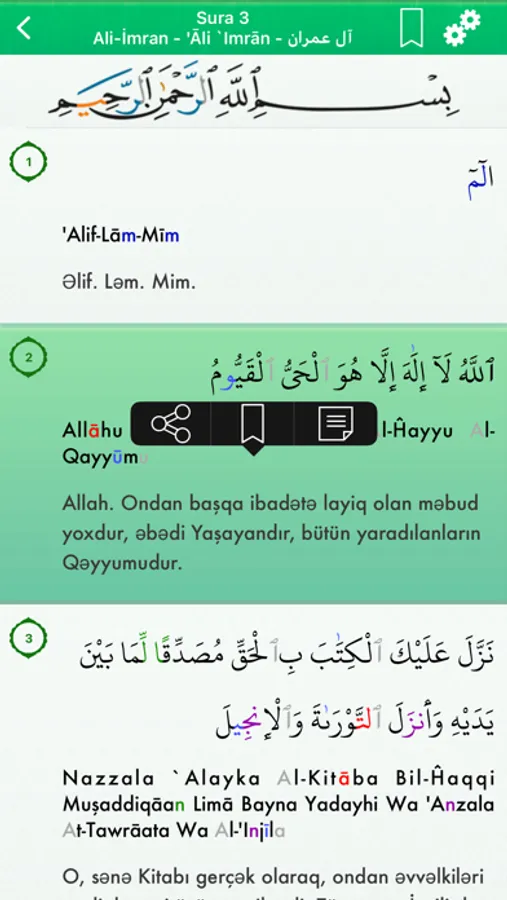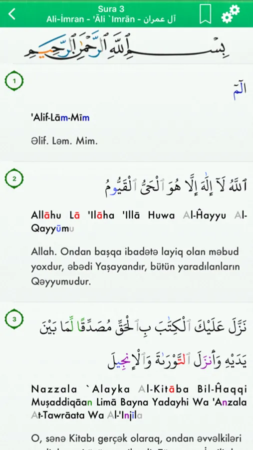 Bu proqram sizin Iphone / iPad / iPod Touch Quran-ı Kərim bütün 114 fəsildən oxumaq imkanı verir.