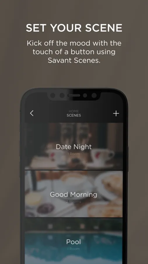 Get ready for next-level personalization. Automate your home with Savant Scenes to capture the perfect music, climate, lighting and security for every occasion. Create a schedule around your Savant Scenes or activate them manually using your voice, iOS devices, in-wall touch panels, Savant Pro Remotes, and keypads.