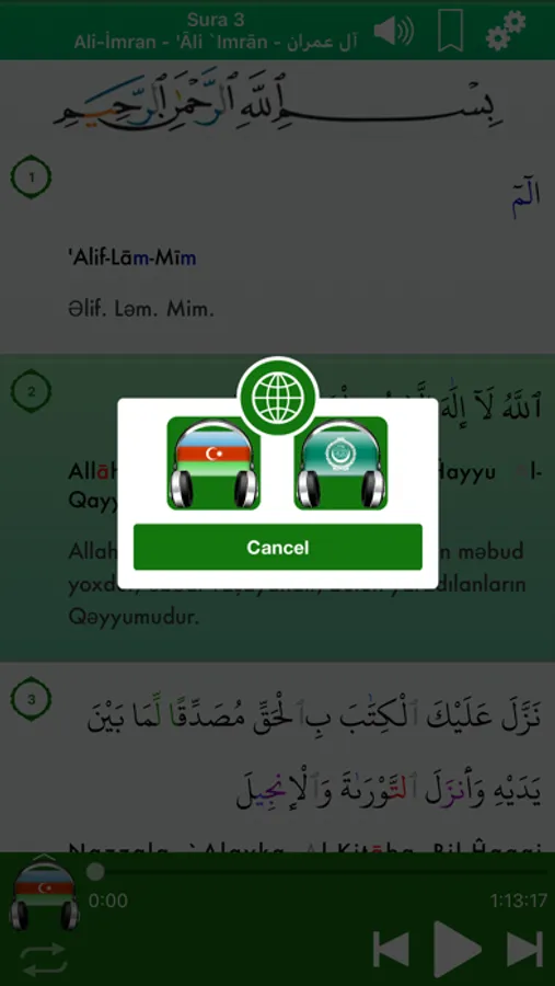 => No İnternet bağlantısı oxumaq və ya Quran dinləmək üçün tələb olunur