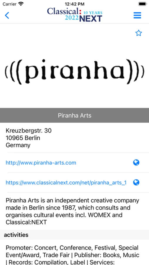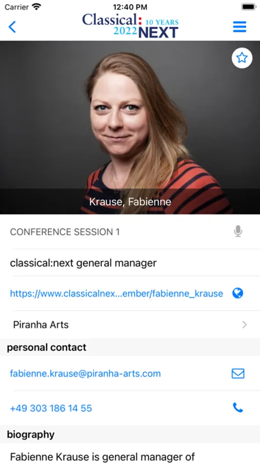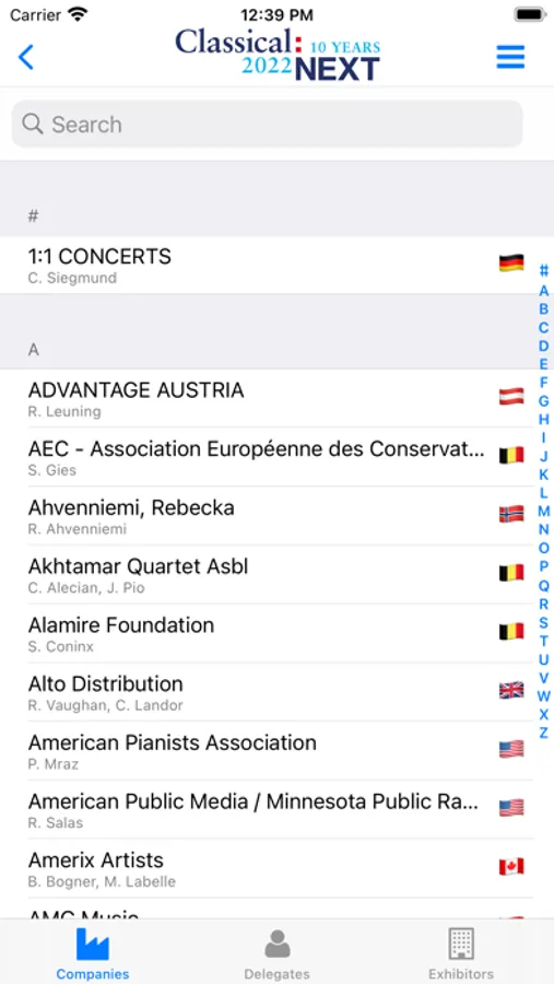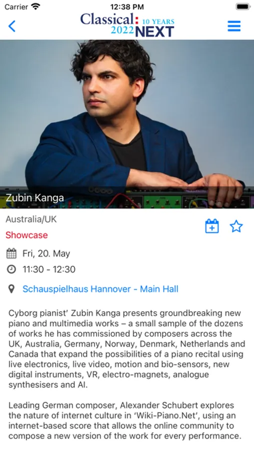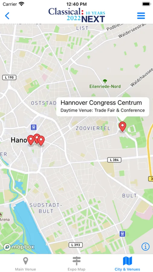 The mobile app is designed to help you facilitate networking and to find your way through the venues and the programme of Classical:NEXT 2022. It contains schedules, which can be sorted either by sections or chronologically, a list of all exhibitors, companies and delegates present at the event, as well as maps of the new venues and the new host city of Hannover.